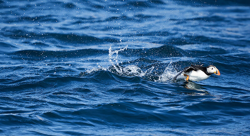 Swimming with strong, fast strokes gives puffins remarkable control underwater. Their wings act as powerful paddles that push them forward in quick bursts, helping them pursue fish beneath the surface. Researchers have recorded dives that reach more than 200 feet. This method works well in cold waters where prey moves unpredictably.