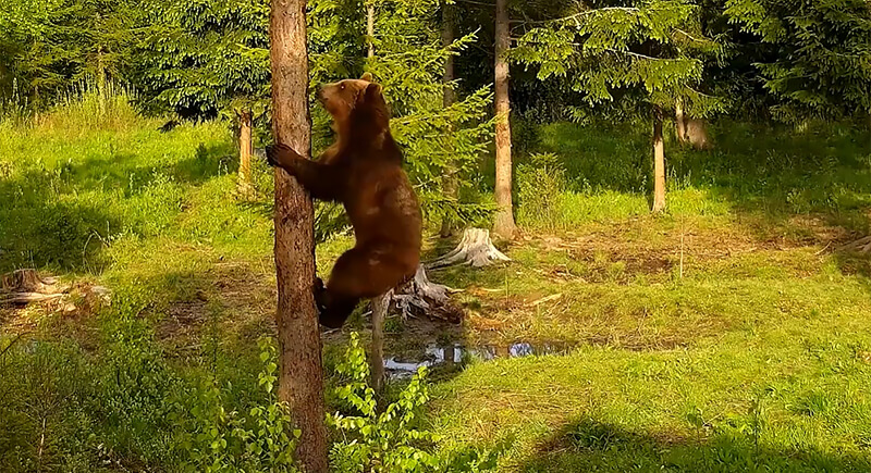 Tree climbing is not limited to black bears. Young grizzlies scale conifers with ease, and even adults can climb when branch spacing allows support. Their long claws make the task awkward, but the ability remains in their toolkit.
