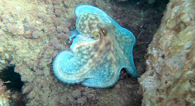 An octopus has no bones and no rigid structure to restrict movement. Muscles provide both strength and support, which allows the body to flatten, stretch, and twist. Any opening wider than its beak becomes passable. This design allows escape, hunting, and exploration in tight spaces.