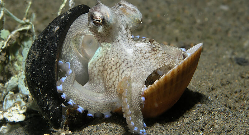 Tool use is supposed to be a marker of intelligence, and octopuses pass that test with no help. Coconut shells, empty clam halves, even discarded bottles—if it can be used for shelter or defense, they’ll figure it out. What’s odd is that they don’t learn it from others. The behavior just shows up.