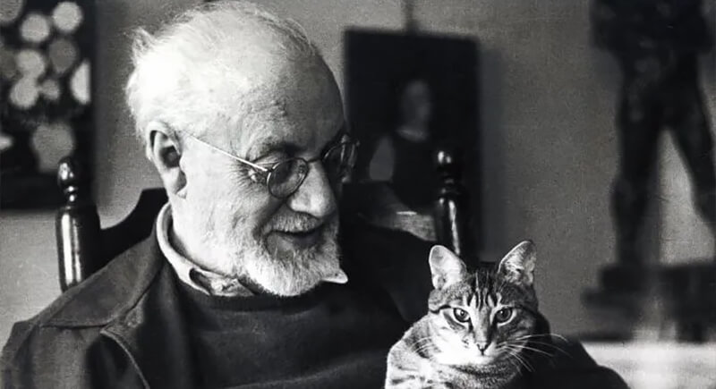 Matisse’s cats—Minouche, Coussi, and la Puce—were constant companions during his later years in Vence. They stayed near his bed or worktable as he recovered from surgery and worked on his cutouts. Pictures show them settled in the studio, a routine that surrounded his projects.