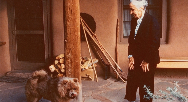 For those familiar with O’Keeffe’s paintings, the strong outlines and solid forms often mirror the physical presence of her Chow Chows, Bo and Chia. She called them “Little People” and kept them close at her New Mexico home, where they frequently appeared in photographs.