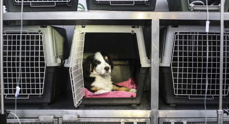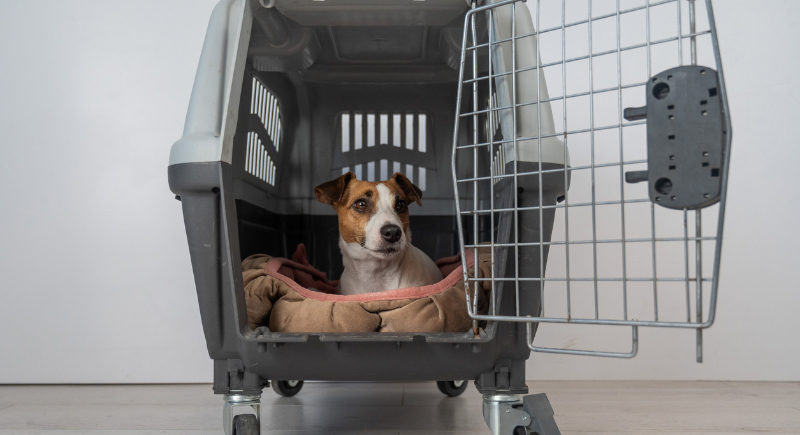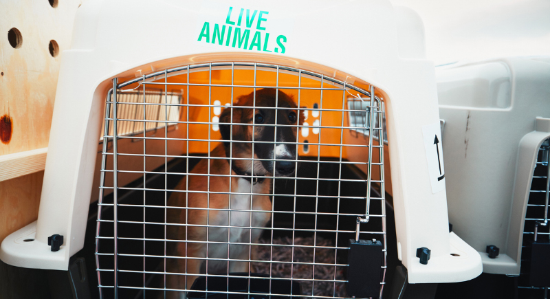 Cargo crates must meet IATA guidelines and be rigid with ventilation on multiple sides. The interior height must allow the dog to stand upright without touching the ceiling. The dog must also be able to turn comfortably and rest in a natural position.