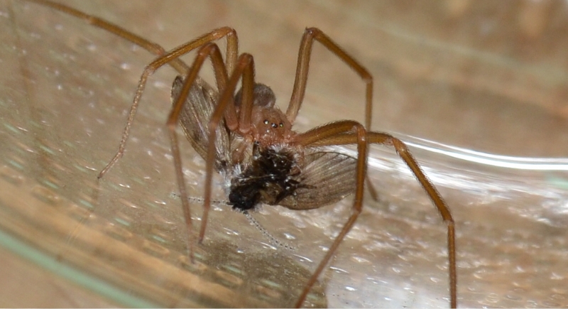 This spider makes small silk “sleeping bags” in ceiling corners and along wall gaps. Unlike many others, it tends to roam instead of staying put, which is why people often bump into it without realizing. Its bite usually causes a brief sting or itch, but the surprise is often the worst part.