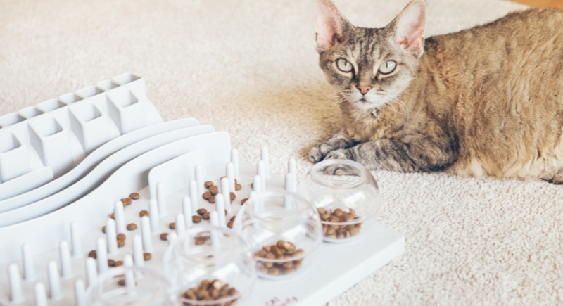 If your cat tends to gobble down food quickly, puzzle feeders are a great solution. These toys slow down mealtime by making your cat work for their food, which encourages them to eat at a slower pace. Not only does this prevent overeating, but it also provides mental stimulation that’s great for their overall well-being.