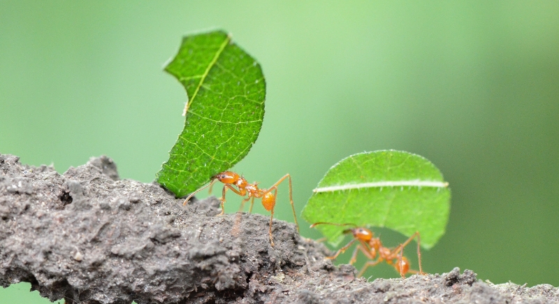 Several million years ago, a group of ants figured out farming and have not stopped since. While they eat other items, leafcutter ants clip leaves, haul them underground, and grow a specific fungus that the colony primarily feeds on. Interestingly, that fungus barely exists anywhere in the wild because it mainly survives in ant farms. Their nests run several meters deep and include ventilation shafts and waste chambers.