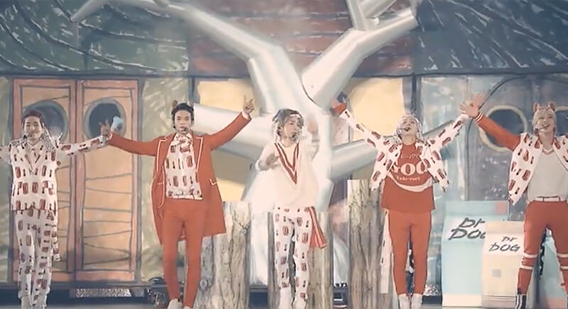 SHINee’s “Woof Woof,” from their 2015 album Odd, brought puppy energy straight to the stage. During live shows, the members leaned into the theme by dressing like dogs and barking with the crowd.