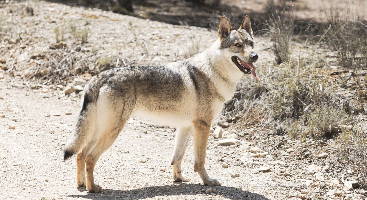 The Czechoslovakian Wolfdog does not just resemble a wolf from a distance. It was developed from German Shepherds and Carpathian wolves, which explains the lean frame, amber eyes, and intense stare. Even when calm at home, it carries that unmistakable wild look that makes people do a double-take.