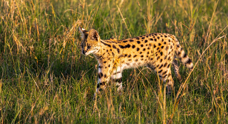 Breeders don’t domesticate Servals. They are still wildcats native to sub-Saharan Africa. They use their long legs and oversized ears to stalk prey and leap over ten feet vertically. Private owners must obtain exotic animal permits, build outdoor enclosures, and follow strict feeding protocols, which often involve feeding raw meat. Prices can fall anywhere between $3,000 and $10,000, excluding housing and veterinary costs.