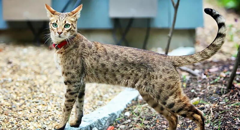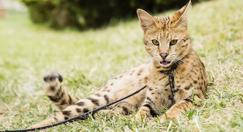 Savannah cats are a cross between African Servals and domestic cats. They are tall and lean with strong hunting instincts. Early generations, such as F1 and F2, can cost more than $20,000. They are intelligent and curious; many learn to open doors, get into cabinets, and outsmart their owners.