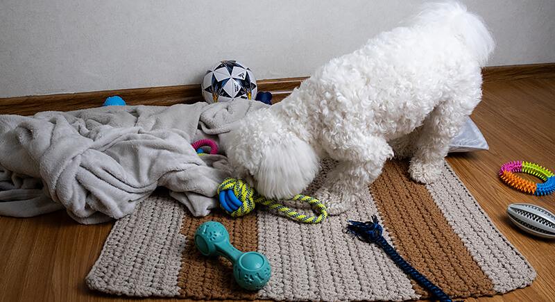 Finding squeaky toys under the couch, feathers in the hallway, or a rubber ball in your shoe is normal when your pet runs the place. Dogs and cats alike enjoy spreading their favorite items throughout their territory. If you’re constantly cleaning up after them and they keep redecorating, you’ve become the housekeeper in their personal playroom.