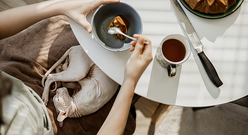 Once your pet claims your bed, sleeping arrangements change. A 2022 PetMD survey found 43% of pet parents let their dog or cat sleep with them. If you’ve ever woken up on the edge of the mattress while your pet stretches out luxuriously in the center, that’s not co-sleeping. Bonus points if you stay still so you don’t disturb them.