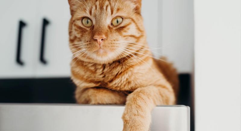Orange Cat Climbs Fridge, Then Panics