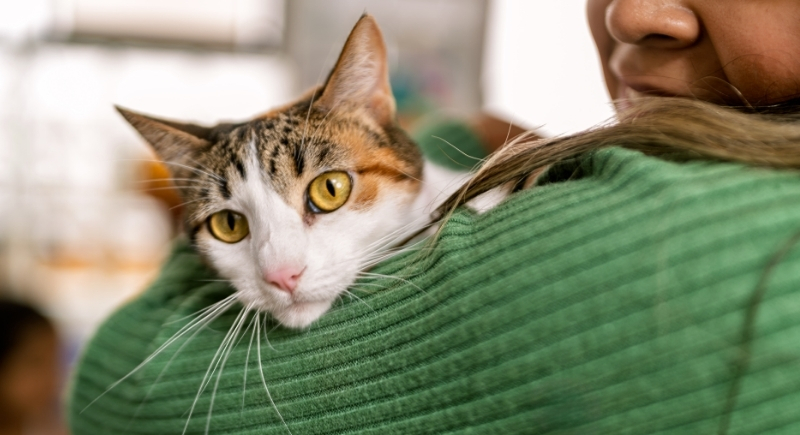 Once a person sits still for long enough, pets choose bodies over furniture for warmth and balance. Cats settle on chests or shoulders where breathing stays steady, while dogs curl into laps that don’t shift. Owners postpone standing up to avoid waking them, even if circulation cuts off or discomfort sets in.