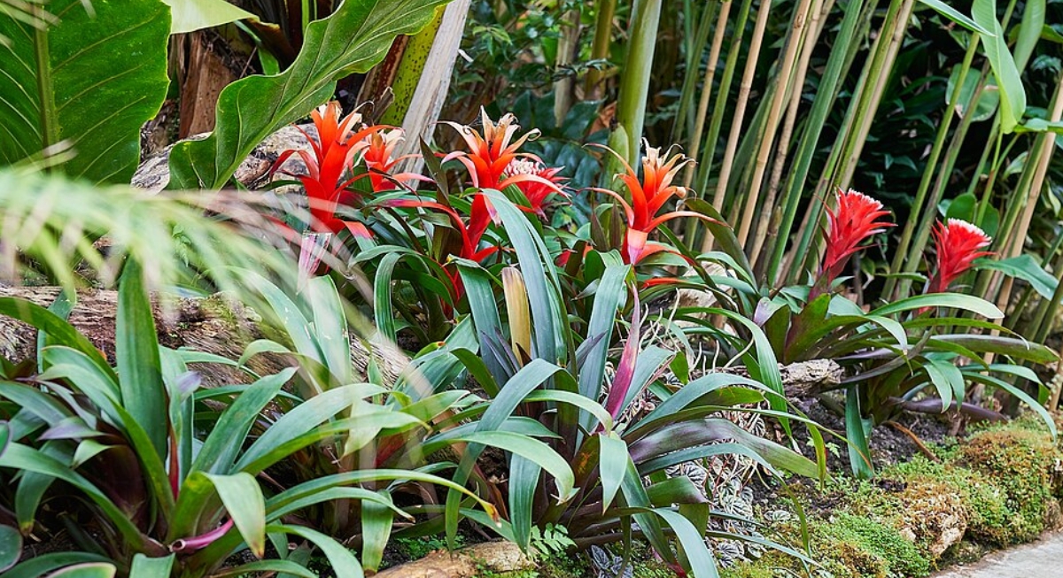 A bromeliad grows from a central rosette that holds water in its cup, so it is usually watered from the middle rather than the soil. The colorful bloom can last for weeks, and after it fades, the plant starts producing small offshoots, or “pups,” that you can repot later. It does best in bright, indirect light with a loose mix that drains quickly, often something closer to bark than regular soil.