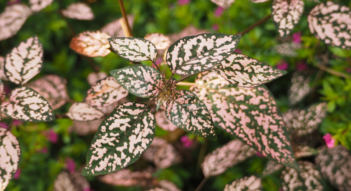 The polka dot plant has small leaves with pink, red, or white markings that stand out right away. It is considered non-toxic for cats and dogs, though eating a large amount can still cause mild stomach upset. Bright, filtered light helps maintain its color, and occasional pinching keeps the growth from getting too leggy.