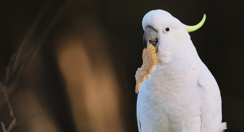 This white parrot stands out thanks to its expressive crest and emotional sensitivity. Strong bonds form quickly, and changes in routine can trigger stress behaviors. These birds respond best to predictable schedules and frequent interaction. Many owners plan future care arrangements early because transitions affect them deeply.