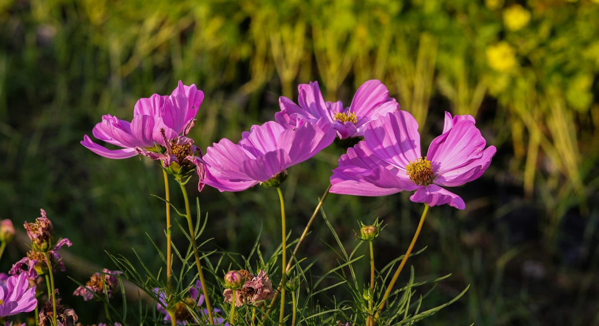 Self-seeding is what sets cosmos apart. Once planted, it can self-seed and gradually fill open spaces. This expands coverage without disrupting the rest of the layout and supports frequent butterfly visits across the garden. Interestingly, these plants actually thrive in poor soil; providing them with too much fertilizer or overly rich earth often results in lush green foliage but very few actual flowers.