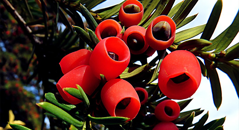 Yew can cause sudden cardiac failure. The berries might look harmless, but they house toxic seeds, and even chewing on the leaves or bark can be enough to cause trouble, including drooling, tremors, and fatal heart issues..