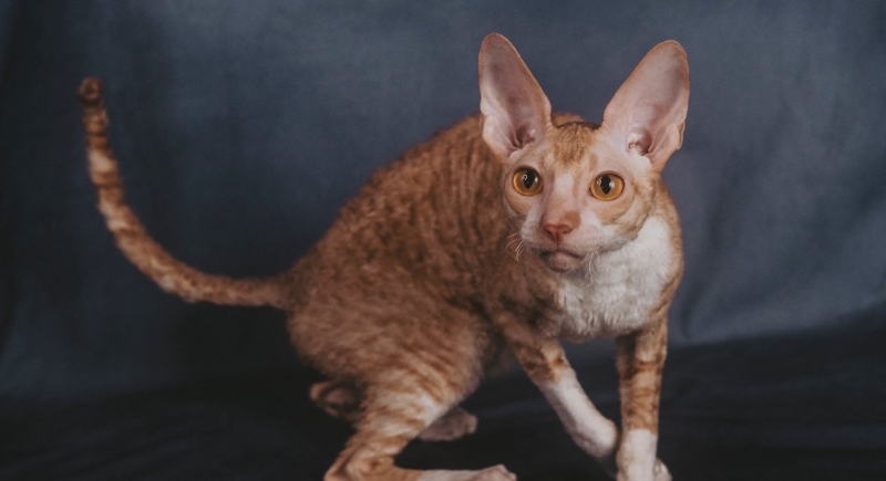 This breed’s short, curly coat feels like suede and comes in plenty of colors, including several shades of orange like red tabby or red smoke. Cornish Rexes have big ears and a whippet-like body, looking like a cat drawn in a hurry. Yet their personalities are energetic and affectionate.