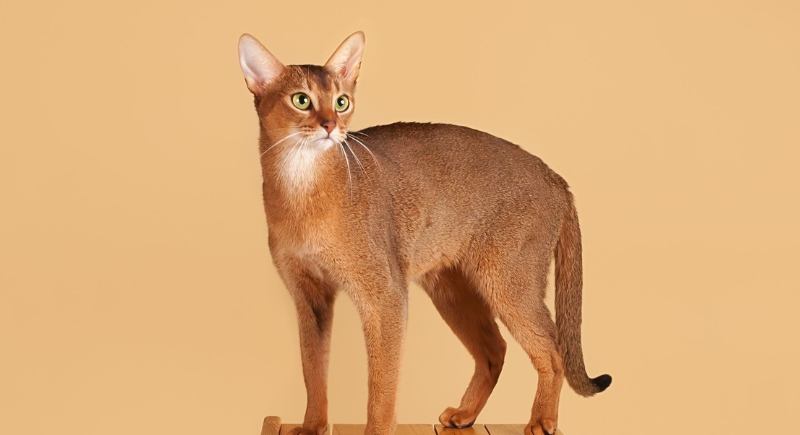 With a tail like a plume and a coat that falls somewhere between red and rust, the Somali looks like it wandered in from a forest. Its fur grows longer than the Abyssinians but keeps the same ticked pattern. They stay in motion, climbing, darting, and investigating corners. These cats are social and too smart to be left alone with a cabinet.
