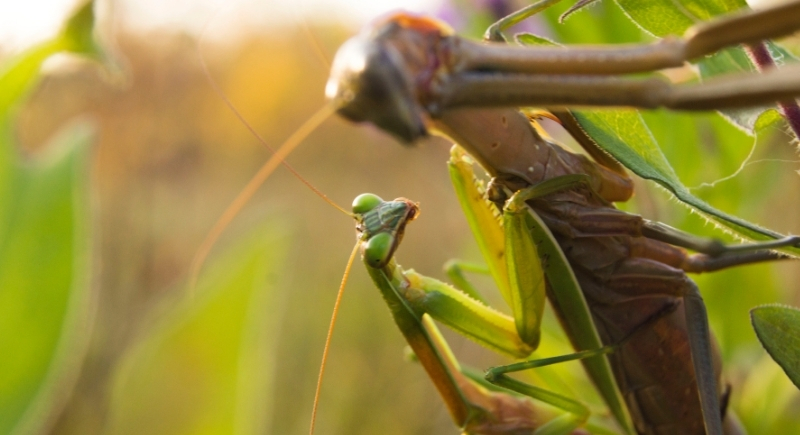 Cannibalism reaches its peak with the praying mantis, as they sometimes bite off their partner’s head during or immediately after mating. It was once thought to be an artifact of laboratory conditions, but has since been confirmed in wild populations of some mantis species. The male partner’s body becomes a protein-rich meal that nourishes developing eggs. Interestingly, decapitation doesn’t stop the reproductive process because the headless body continues through nerve impulses.