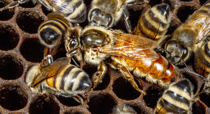 A queen bee controls her hive through chemical signals. She releases pheromones that suppress the reproductive systems of female worker bees, which keeps them sterile and focused on maintaining the colony, gathering food, and caring for young. When new queens develop, conflict is unavoidable. Rival queens are tracked down and killed, often through direct stinging fights inside the hive. During swarming or supersedure, workers may raise several queens at once, but the outcome is the same. Only one survives, and she removes all competition before taking full control of the colony.