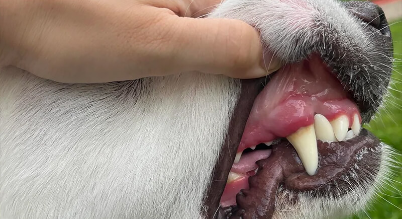 During heatstroke, blood vessels expand in an attempt to cool the body, which can result in dark pink or red gums. This change may be accompanied by drooling or a dry mouth. If the color doesn’t return to normal quickly, it could mean their temperature is still climbing and needs immediate attention.