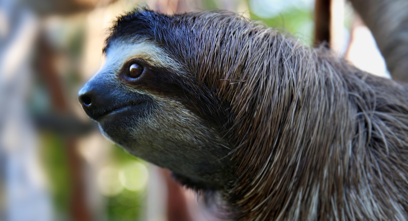 Three-toed sloths can rotate their heads up to about 270 degrees. This flexibility enables them to scan their surroundings without having to shift their bodies. Staying still while staying alert keeps energy use low and safety levels higher.