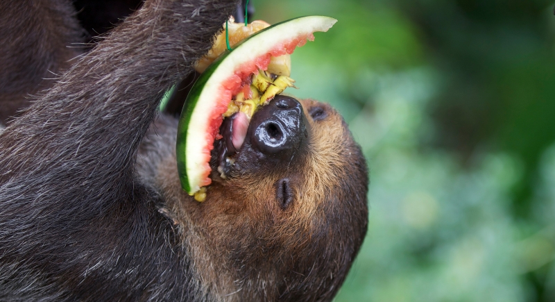 Digestion for a sloth is a slow commitment rather than a quick task. Leaves, fruit, and sap sit in a multi-chambered stomach that can hold up to 37% of body weight at one time. Food can take days or weeks to fully break down.