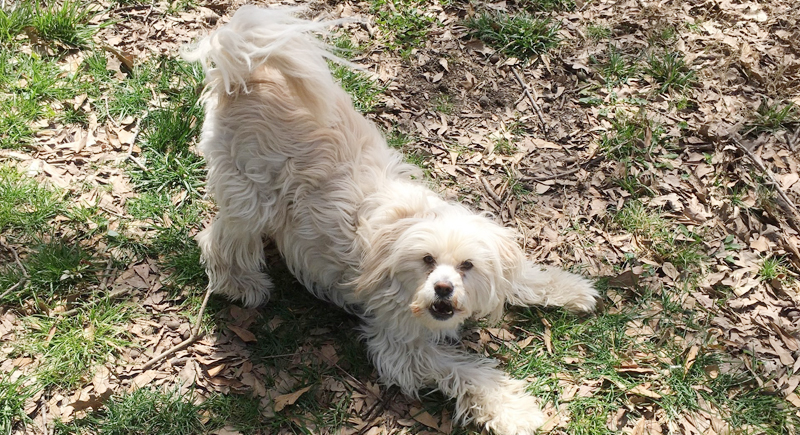 In relaxed dogs, the bow acts as a social invitation. The front legs extend forward, elbows touch the ground, and the hindquarters stay raised. The muscles remain loose. The tail moves freely. The body often springs back up into exaggerated movement.