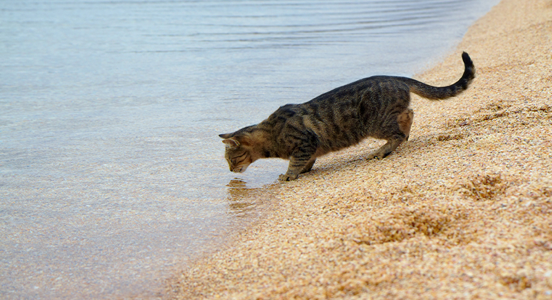 A cat’s kidneys are efficient enough to filter out salt, which allows them to safely hydrate from seawater. This trait likely helped their wild ancestors survive near coasts and arid regions. In contrast, human kidneys would be overwhelmed by the salt content in ocean water.