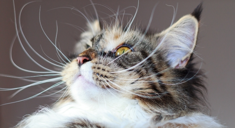 Cat whiskers can detect air movement and allow them to sense objects or motion before they are visible. These highly sensitive hairs, also called vibrissae, are found not only on the muzzle but also above the eyes and on the backs of their front legs. Trimming whiskers can disorient them significantly.