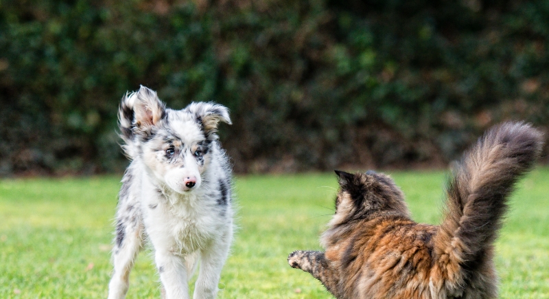 While dogs are social and seek frequent interaction, cats usually prefer limited contact and guard their personal space. This difference leaves dogs unsure how to interpret a cat’s behavior. A slow blink or casual stretch can look like a direct challenge. That’s why the text would read, “She’s staring at me, she’s probably planning something.”