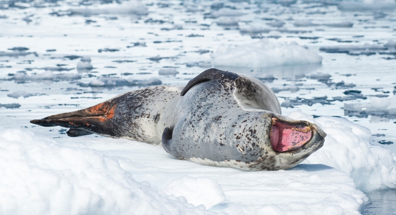 Leopard seals rank among the largest seal species on Earth, with adult females reaching nearly 12 feet in length and weighing more than 1.3K pounds. They possess long canine teeth, powerful jaws that open wide, and a hunting range that includes penguins, fish, krill, and other seals. Scientists classify them as apex predators in Antarctic waters, with orcas being the only known predators that hunt them.