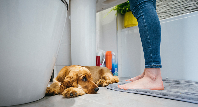 Privacy becomes a distant memory once a dog decides bathroom trips are a shared activity. You sit down, and suddenly there’s a familiar face staring up like this was always the plan. The loyalty is touching, slightly confusing, and something that only dog moms fully accept as part of everyday life.