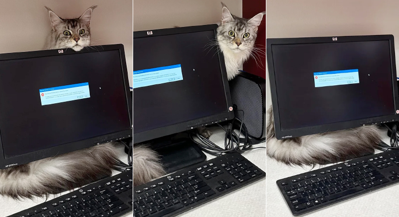 Every cat owner recognizes that moment when their pet realizes the car ride isn’t for treats or sunshine but a vet visit. One minute they’re stretched out like royalty, and the next they’re gone, hiding wherever they can fit. This clever cat chose to vanish behind a computer monitor, certain no one would notice. The vet spotted her in seconds, tail and fur sticking out, and her expression made it clear she couldn’t believe she’d been caught.