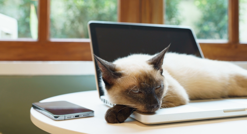 Clothing, laptops, shoes, and other belongings can hold strong scent cues. Resting on those items helps regulate stress through familiarity, and that’s why they love lingering around them. Cats use scent to maintain emotional stability when their person is absent.