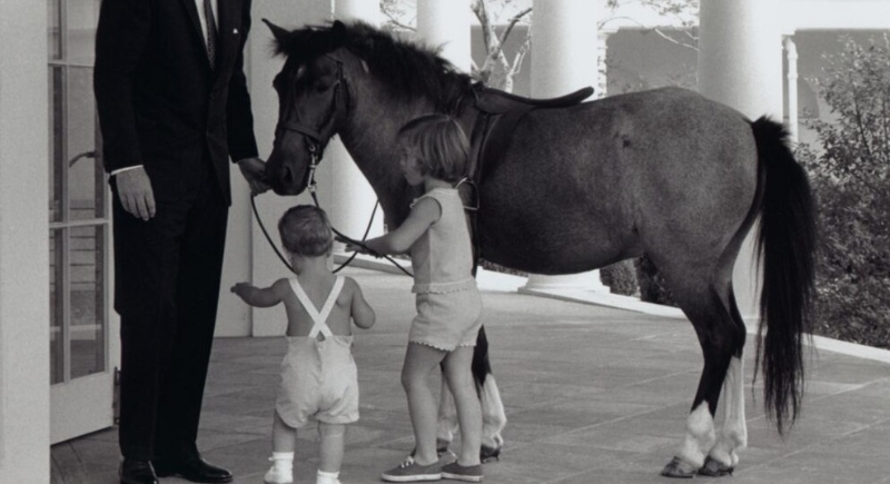 Macaroni was a Shetland pony given to President John F. Kennedy’s daughter, Caroline, by Vice President Lyndon B. Johnson. The pony was a hit on the White House grounds, becoming a popular sight as it roamed freely. It was even featured in a spread for Life magazine.