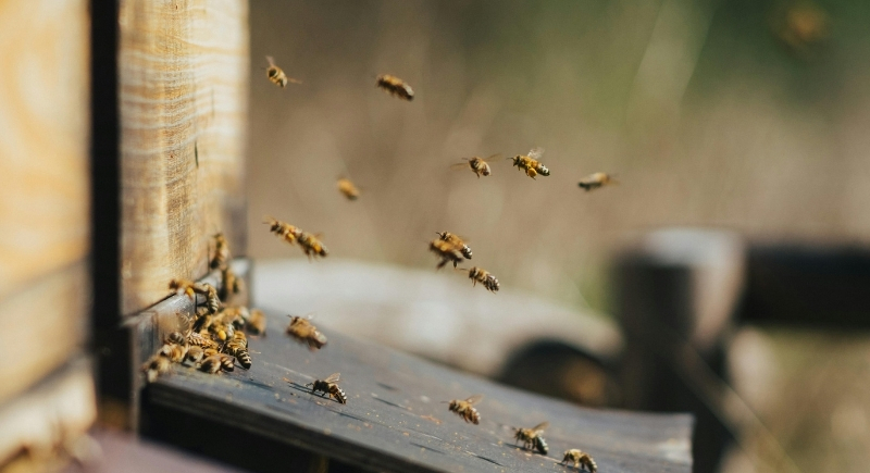 Honeybees communicate food locations using a waggle dance performed inside the hive. The angle of the movement signals direction relative to the sun, and duration conveys distance. Fellow bees observe and then fly directly to the source. This system enables colonies to respond quickly to changing resources without relying on visual maps or direct guidance.