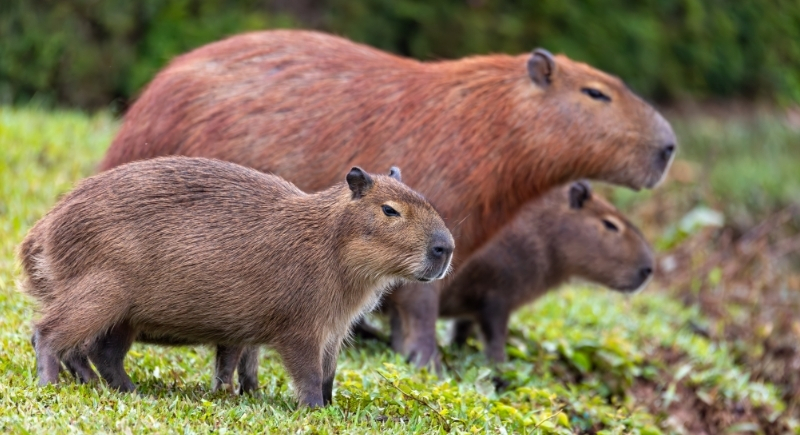 Capybaras live in social groups that often include multiple species nearby. Birds perch on their backs. Smaller animals rest close without resistance. Observers note low aggression levels and steady group routines centered around water access. Their calm responses reduce tension in shared environments.