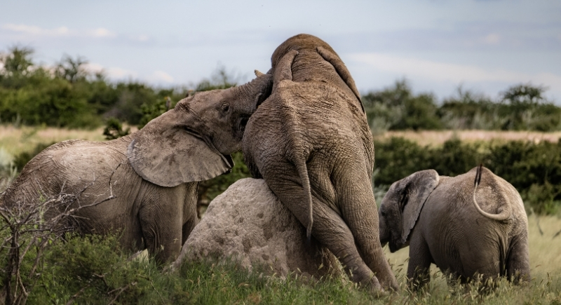 When an elephant shows signs of distress, nearby herd members often approach and make gentle contact with it using their trunks or body positioning. Field observations describe low-frequency vocalizations paired with calm physical gestures. The behavior strengthens social bonds within tightly structured family groups that rely on cooperation.