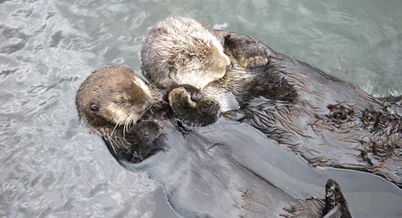 Drifting apart is a real problem when sleeping at sea, so sea otters solve it with a simple habit. Floating on their backs, they link paws with a neighbor or wrap themselves in kelp like a loose anchor. It limits heat loss and allows young otters to rest safely near adults.