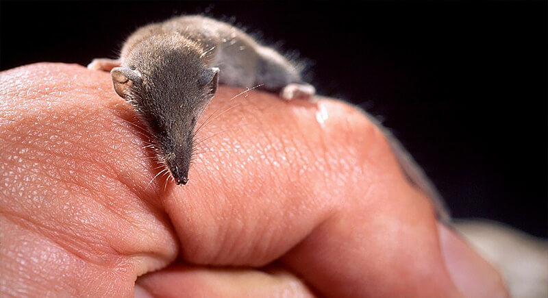 This sub-Saharan species grows to just over an inch long, and it is the smallest mouse in the world. Instead of drinking from puddles, it gathers dew by stacking pebbles outside its burrow and licking off the moisture. African pygmy mice are sometimes kept as pets, though their tiny bones make them incredibly fragile.