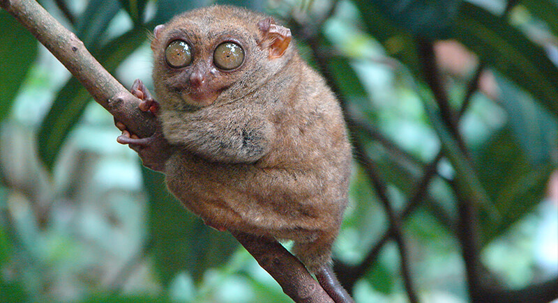 Big eyes, long fingers, and a head that rotates 360 degrees make the Philippine tarsier look like a cartoon. Yet it’s all a function. These nocturnal primates rely on excellent night vision and a strong grip to catch insects in forest trees. Adults weigh about 4 to 5 ounces and rarely grow taller than six inches.