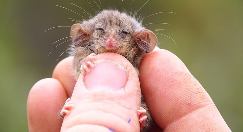 With a name that sounds made-up, this marsupial is very real and very small. It is native to Tasmania and weighs just 8 grams. It uses its prehensile tail to hang from branches. In winter, it enters a torpor state, curling into a ball and covering its eyes with its ears to conserve energy.