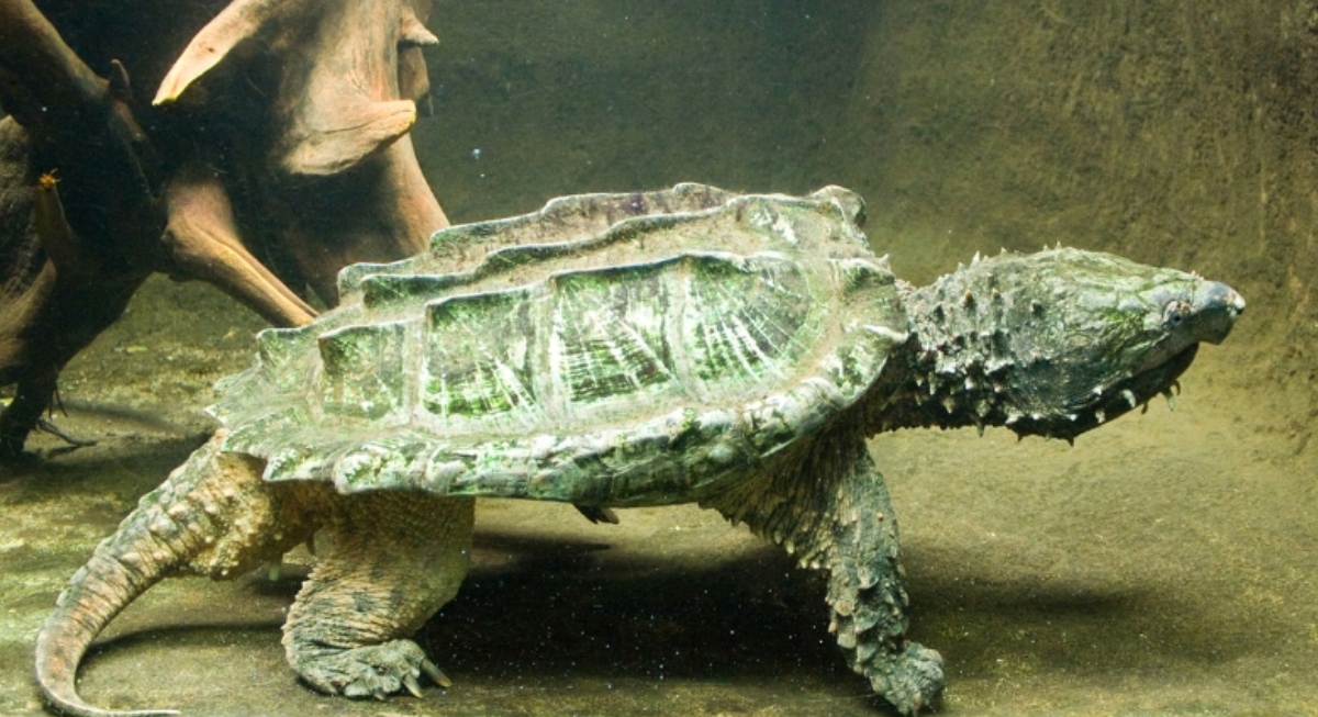 If you ever explore freshwater systems across the United States, you may come across a turtle with a rough, spiked shell and a sharply hooked beak, giving it a distinctly rugged, armored appearance. Its hunting method relies on patience rather than movement. A small lure on its tongue mimics a worm to attract fish within reach.