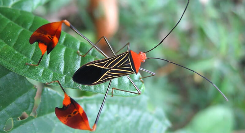 No one could accuse this insect of being subtle. Males of the flag-footed bug species flash brightly colored, leaf-like extensions on their hind legs during mating rituals. If a predator bites, the insect can drop the whole leg and scurry off. They spend their lives feeding on plant sap and avoiding becoming someone else’s lunch.
