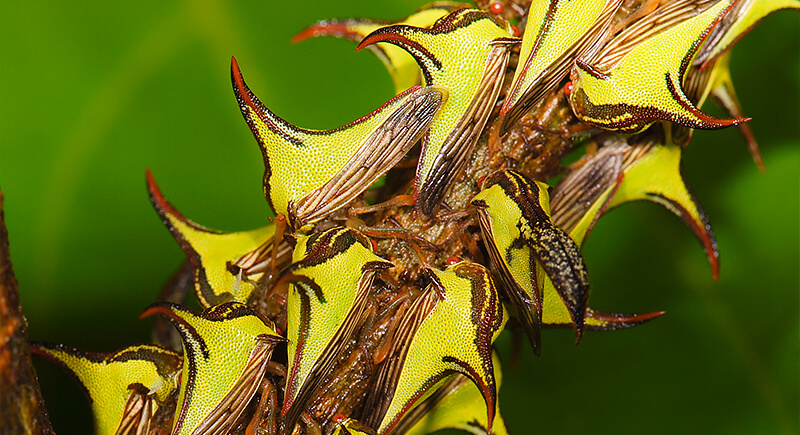 This insect pulls off a convincing thorn disguise, complete with a sharp spine-like projection rising from its back. These bugs pierce plant stems to sip sap, often in large, noisy groups. Their odd shape helps them avoid predators, but farmers consider them pests.
