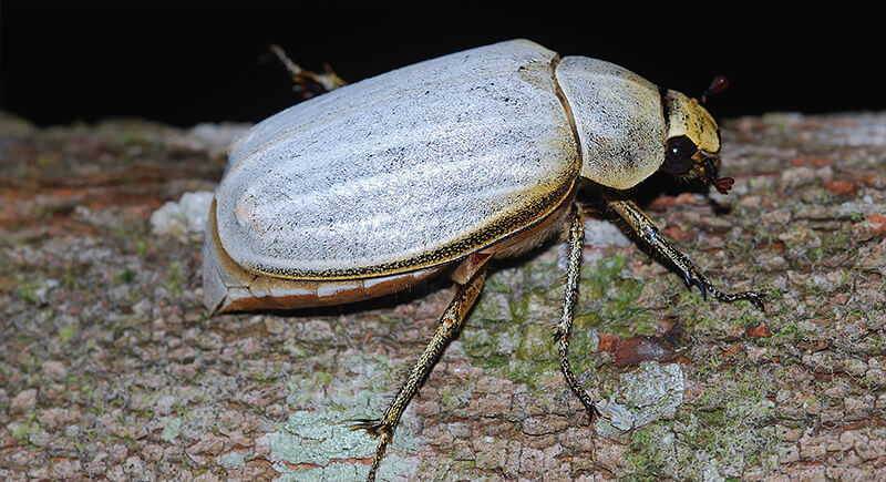 The Cyphochilus beetle is famous for its color. Its body is covered in ultra-white scales made of randomly arranged filaments. These reflect light in a way that makes the beetle appear brighter than paper. Its structure has inspired researchers studying more sustainable, non-toxic white pigments for applications such as paint, paper, and cosmetics.